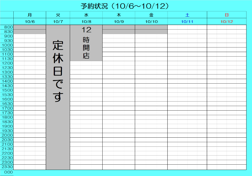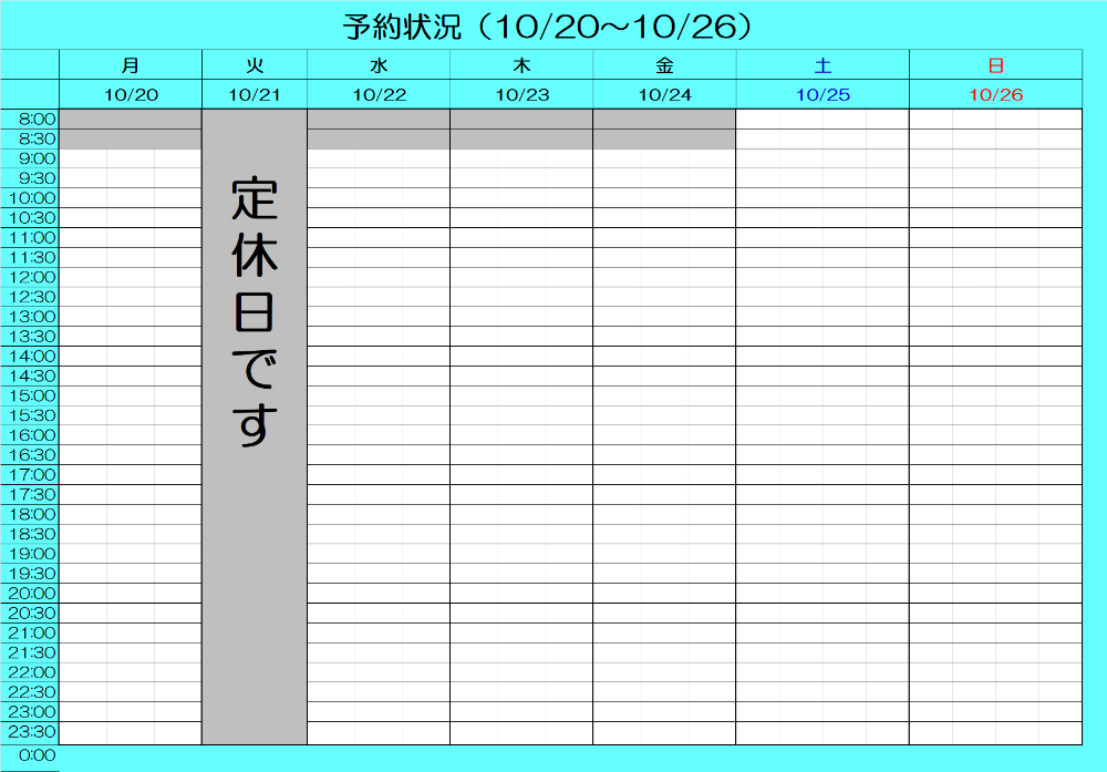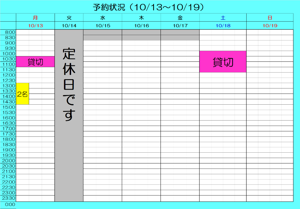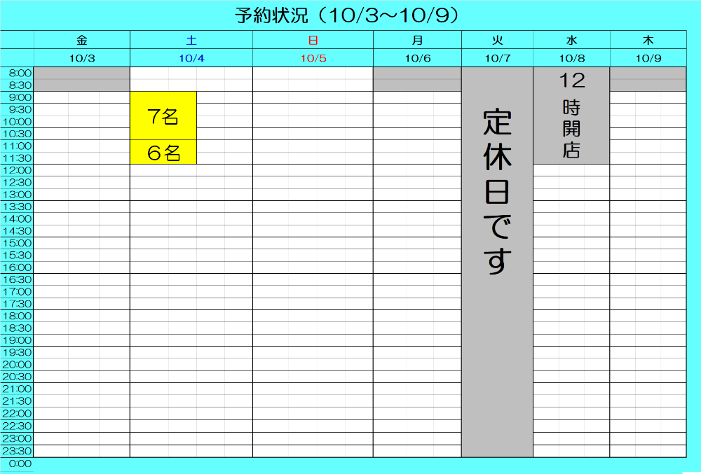 最新予約状況 10/2 20:30