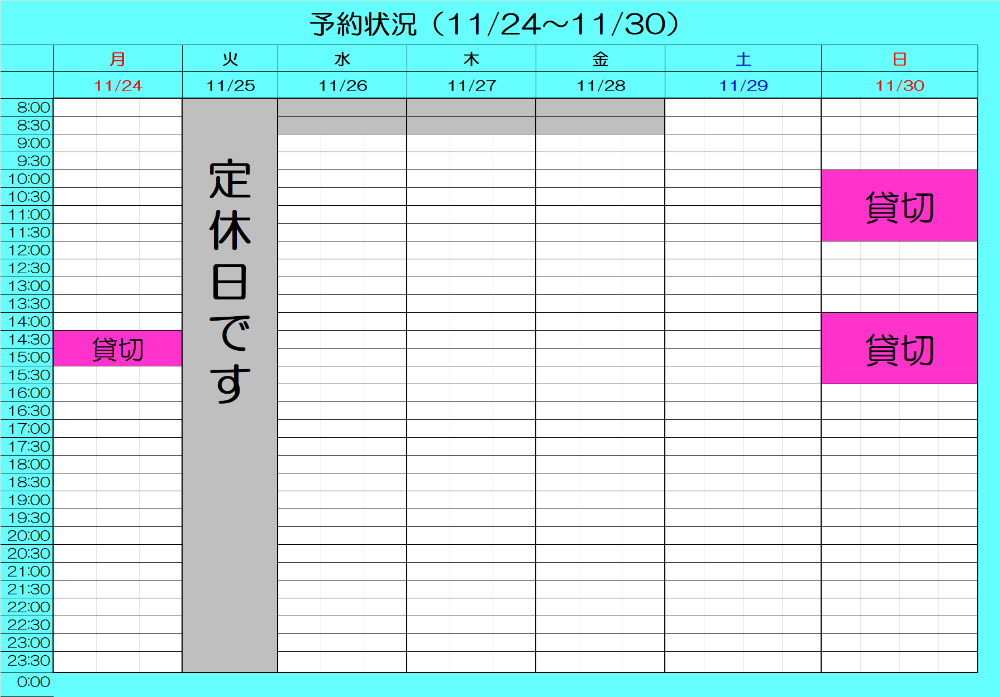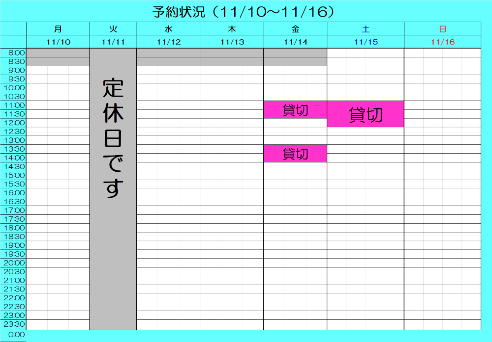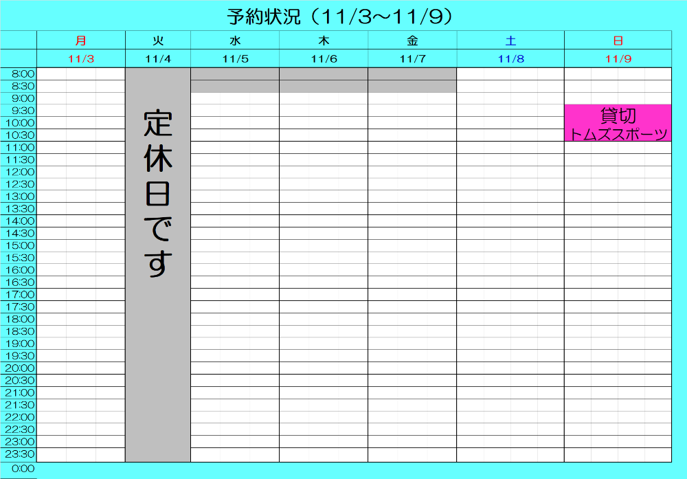 最新予約状況 11/3 17:00